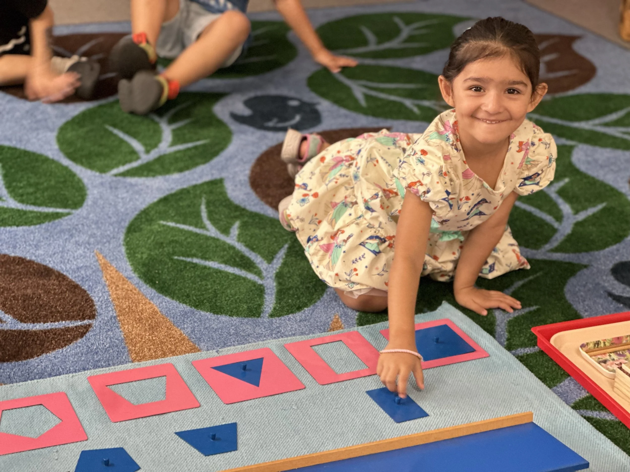 We provide a consistent schedule and prepared environment. Students have the freedom of choice to discover their interests and develop a love for learning. Students’ comfort, confidence, and enthusiasm grow daily! They are well prepared for an excellent transition to Kindergarten.